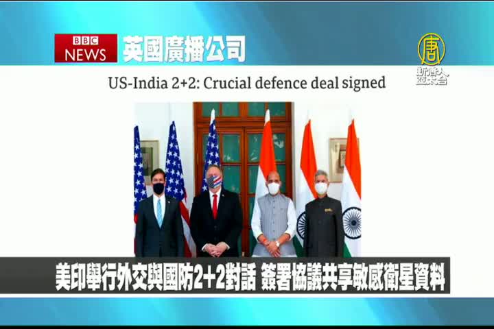 【新唐人亞太台 2020 年 10 月 28 日訊】繼續是英國廣播公司BBC的報導:美國與印度舉行外交與國防2+2對話,簽署協議共享敏感衛星資料。
