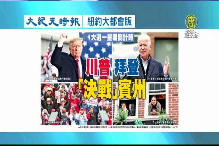 【新唐人亞太台 2020 年 10 月 28 日訊】接著看到大紀元時報紐約大都會版報導:大選一星期倒數計時,川普拜登決戰賓州。