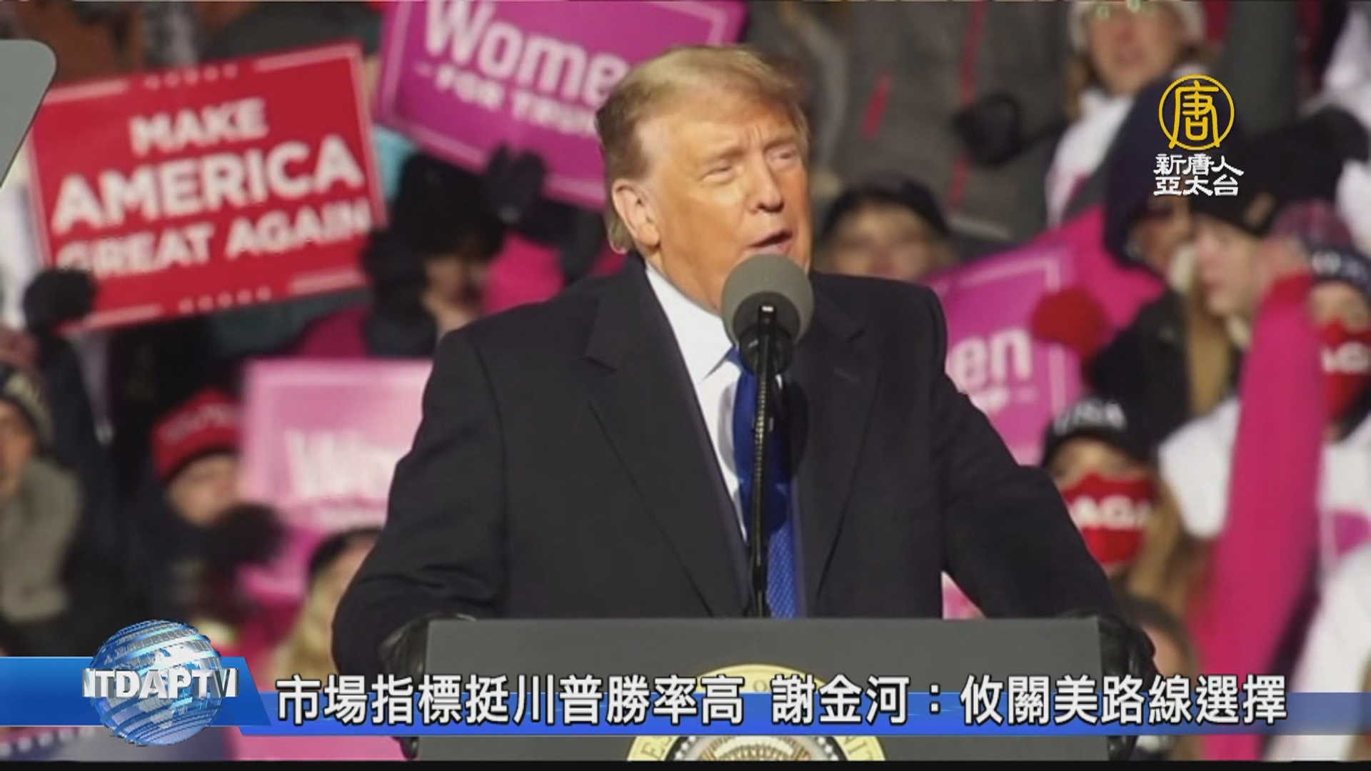 【新唐人亞太台 2020 年 10 月 28 日訊】美國大選倒數一周,美國市場指標,已出現力挺川普的聲音,還有外資報告點名認為,川普勝選,將有利金融市場行情。財經專家謝金河分析,美國大選將決定美國未來發展路線,也攸關台美關係進展。
