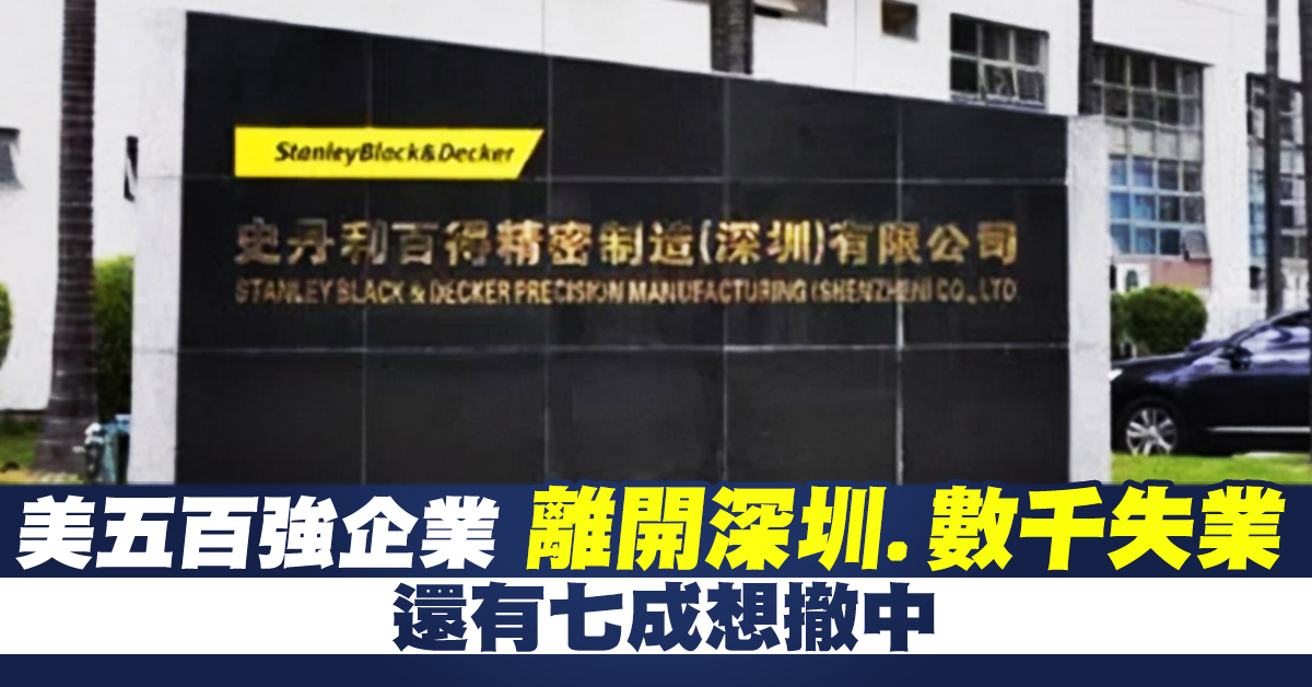 【新唐人亞太台 2020 年 10 月 28 日訊】從美中貿易戰以來,陸續有外企把產業鏈撤離中國大陸。全球最大五金工具企業「史丹利百得」也跟進撤離,宣布關閉深圳工廠。周一(10月26號)深圳公司解散的消息,刷爆中國社群網路。渣打集團最近調查發現,在大陸的外資企業,有70%正在考慮,至少把一部分產能遷出大陸,分散風險。