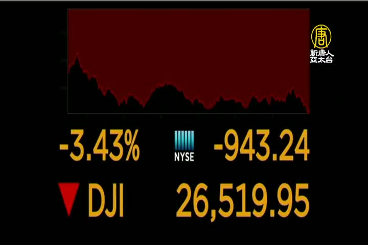 【新唐人亞太台 2020 年 10 月 29 日訊】早安新唐人,先來關心,全球疫情急速惡化,全球確診數已超過 4,409 萬例,死亡數超過116 萬例。歐洲的德國和法國都在當地28日宣布大封鎖,加上美總統大選前的不確定性,和全球經濟的潛在影響,美股VIX 恐懼指數暴漲超過20%,攀升至 6 月以來最高。週三,美股道瓊指數下跌 943 點。標普 500 指數下跌 119 點。那斯達克指數下跌 426點,美國五大科技股集體崩跌。台股 ADR 集體下滑。聯電 ADR下跌 3.83%;台積電 ADR下跌 3.30%。