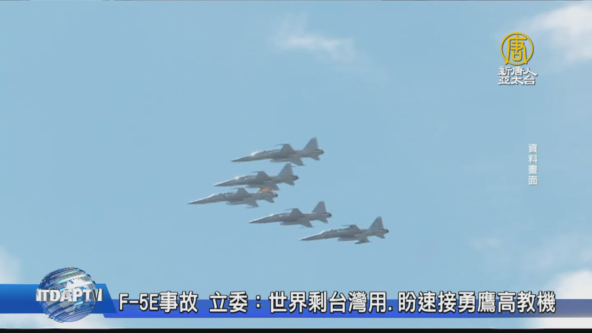 【新唐人亞太台 2020 年 10 月 29 日訊】空軍台東基地一架F5E訓練用戰鬥機,上午發生墜海事故。國會外交國防委員表示,新型勇鷹號高教機進度順利,希望能夠逐步銜接取代。