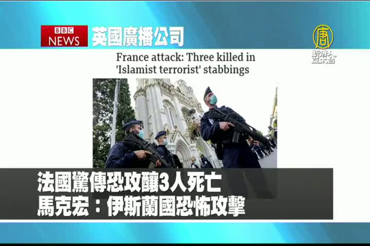 【新唐人亞太台 2020 年 10 月 30 日訊】繼續是英國廣播公司BBC的報導:法國驚傳恐攻釀3人死亡,法國總統馬克宏表示,這是伊斯蘭國恐怖攻擊。