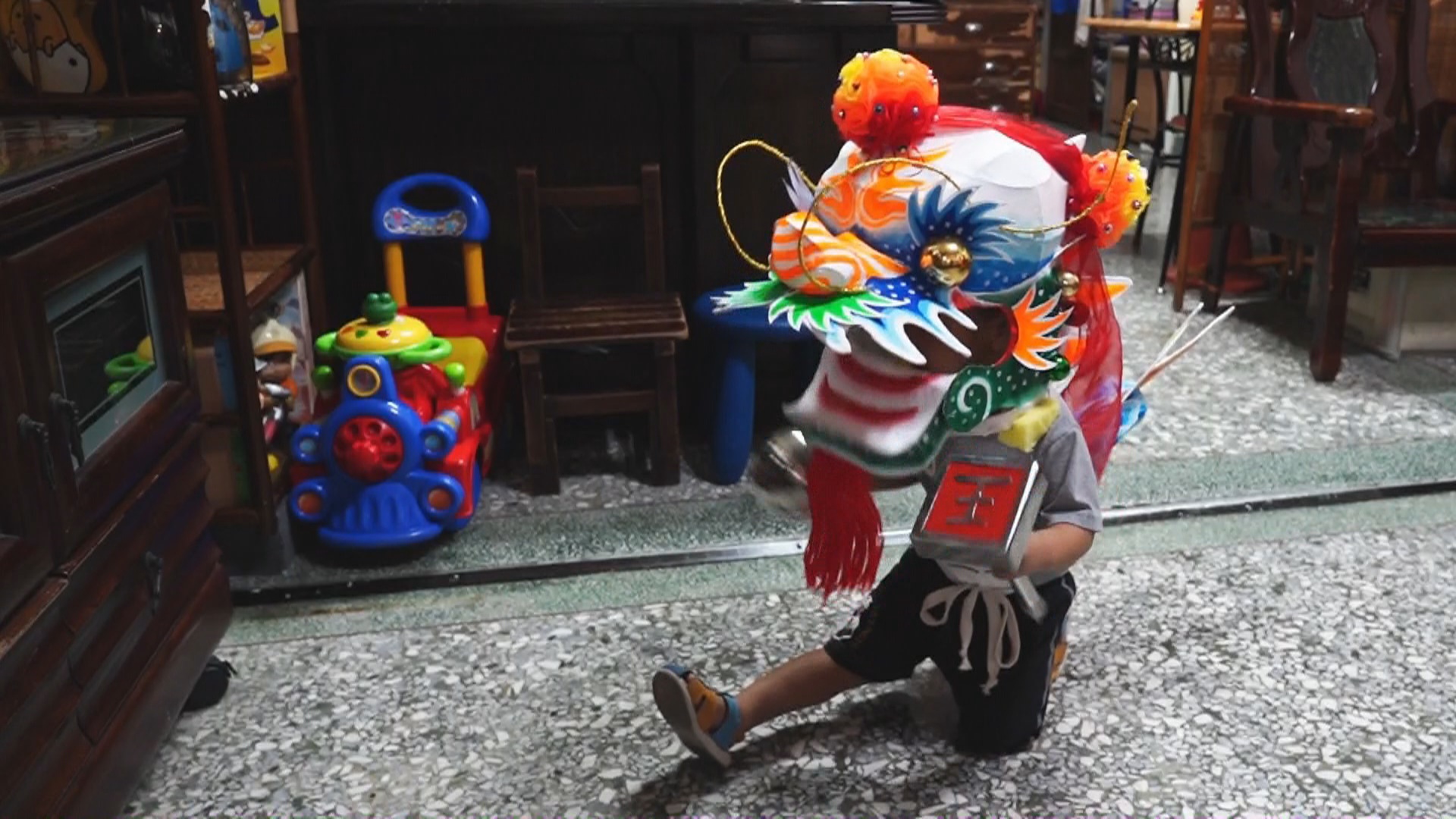 吳登興發現兒子對龍鳳獅非常有興趣,花一個月的時間,用竹子、鐵絲,布還有水泥漆和紙,採用古法做出迷你版的龍鳳獅,他也希望兒子能夠傳承這項技藝,把先人的技術流傳下來。