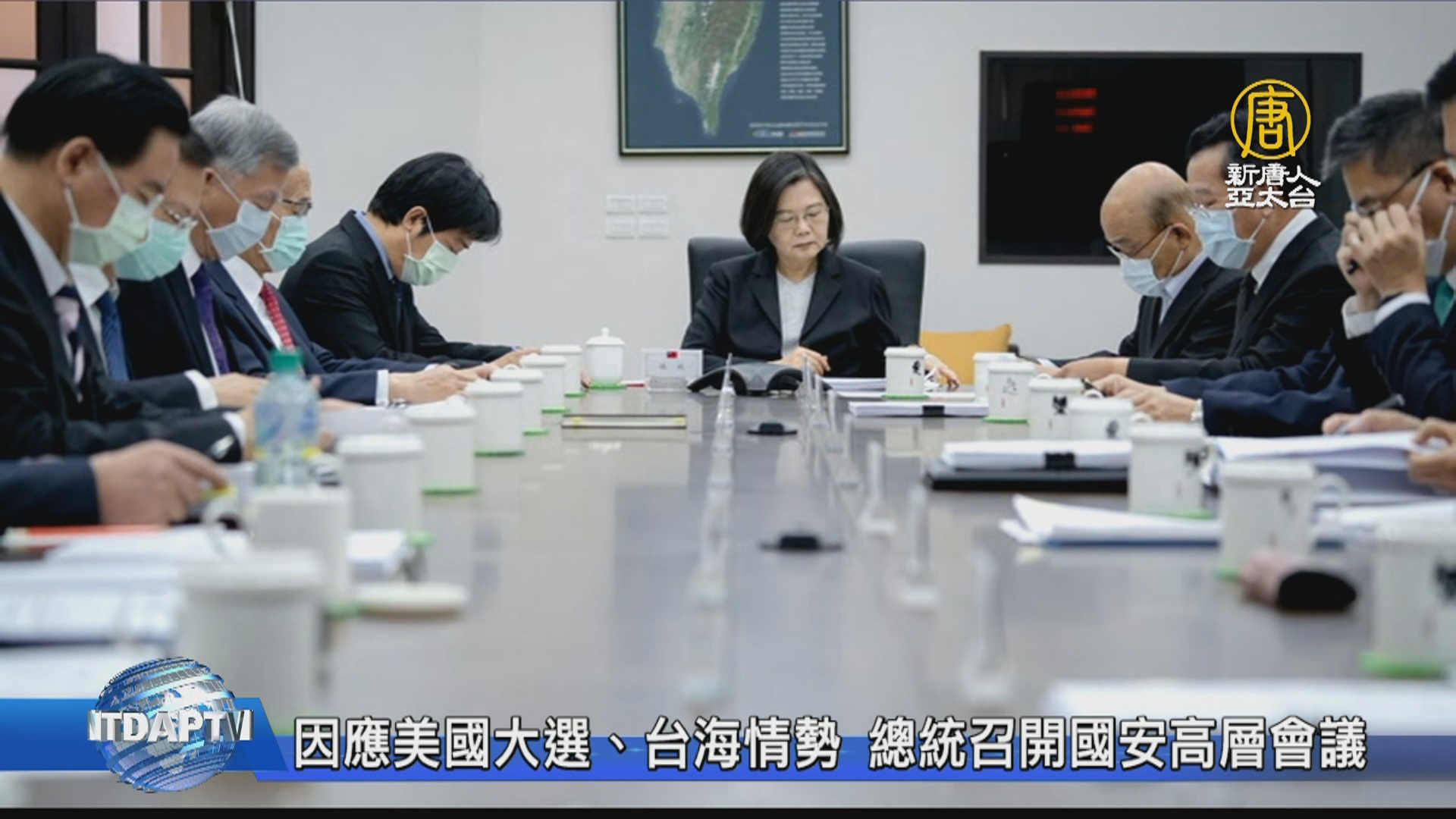 【新唐人亞太台 2020 年 10 月 31 日訊】因應國際重大情勢發展,包括即將進行的美國總統大選,與中共五中全會,總統蔡英文週六上午召開國安高層會議,就中共威脅、深化台美關係、穩定兩岸情勢與國內政經局勢進行裁示。
