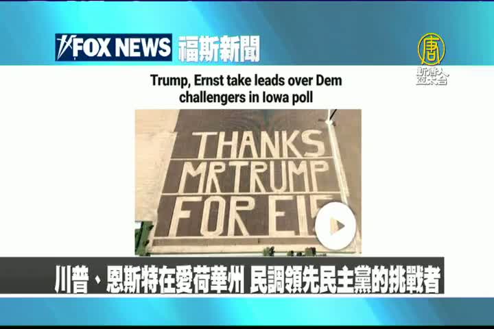【新唐人亞太台 2020 年 11 月 03 日訊】首先來看到美國福斯新聞報導:川普、與參議員恩斯特在愛荷華州,民調領先民主黨的挑戰者。