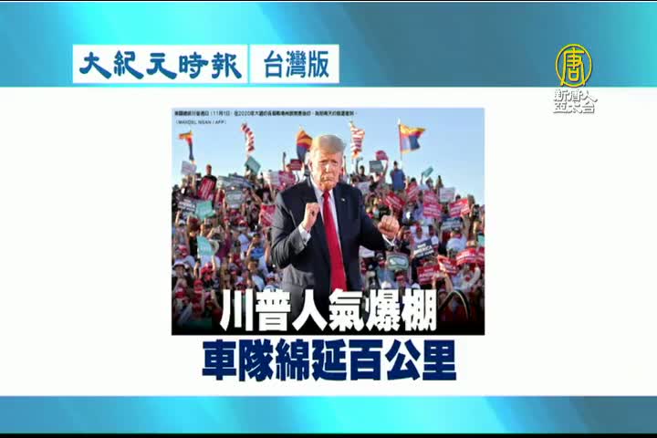 【新唐人亞太台 2020 年 11 月 03 日訊】繼續看到大紀元時報台灣版報導:川普人氣爆棚,車隊綿延百公里。