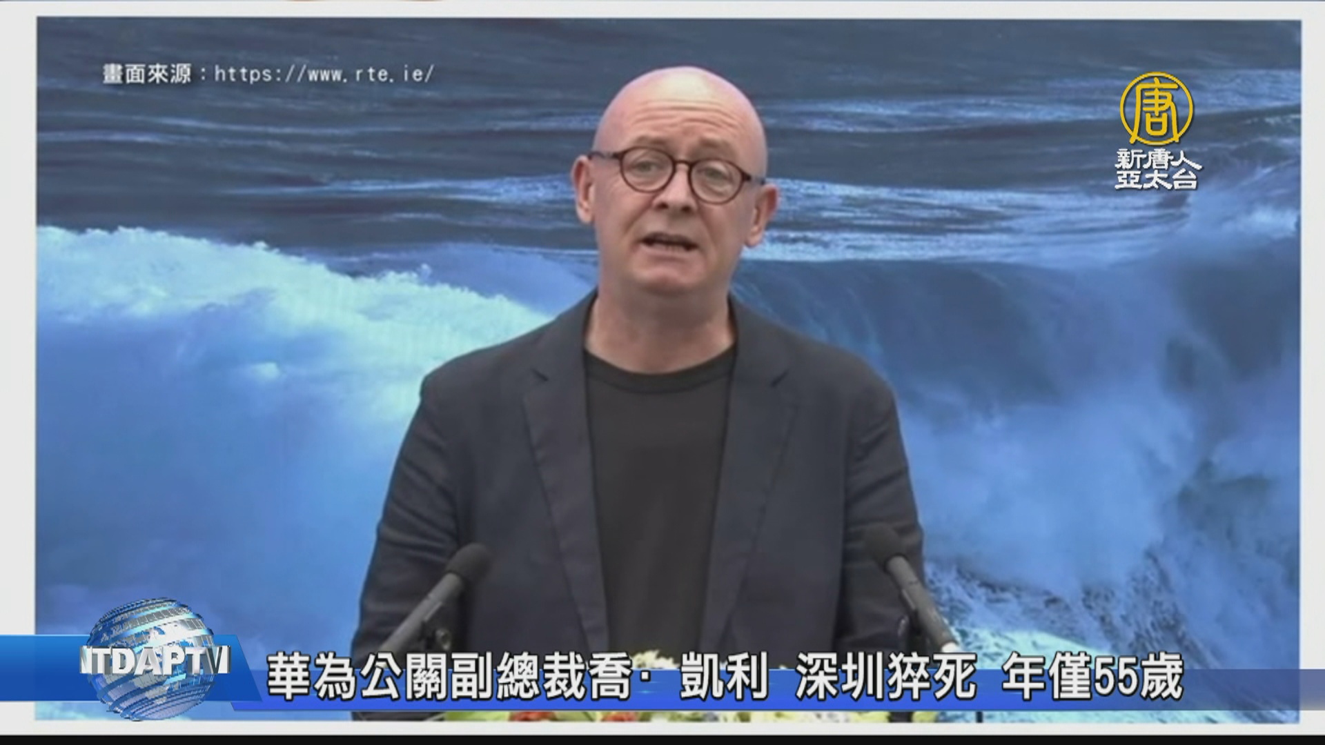 【新唐人亞太台 2020 年 11 月 03 日訊】中國高科技公司風波不斷,「愛爾蘭時報」報導,愛爾蘭籍的喬·凱利,是中國華為公司的發言人兼公關副總裁,近日他突然在深圳離世,終年 55歲,報導中沒有提及死因及離世的具體時間。喬·凱利是 2012年進入華為,並從倫敦搬到華為總部所在地的中國深圳。近年來,華為因幫助中共竊取各國資訊,而被西方國家驅逐、圍剿。值此敏感時間,身為發言人的喬·凱利猝死,也引發各種猜測。