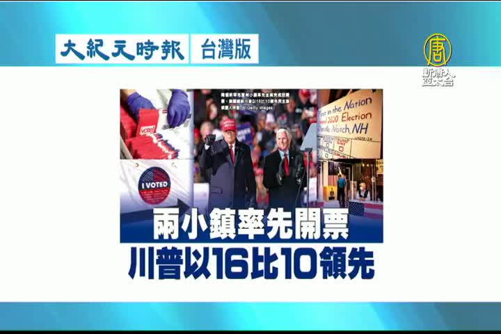 【新唐人亞太台 2020 年 11 月 04 日訊】繼續看到大紀元時報台灣版報導:兩座小鎮率先開票,川普以16比10領先。