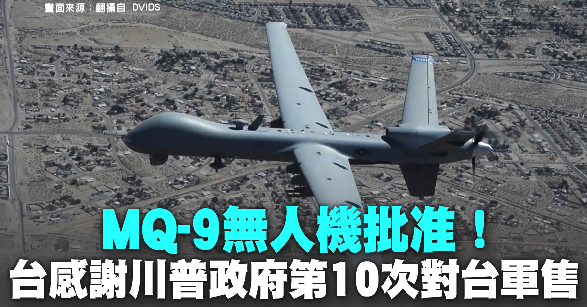 MQ-9無人機批准!台感謝川普政府第10次對台軍售