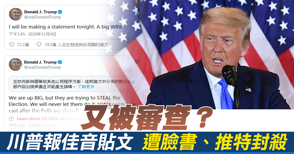 又被審查?川普報佳音貼文 遭臉書、推特封殺