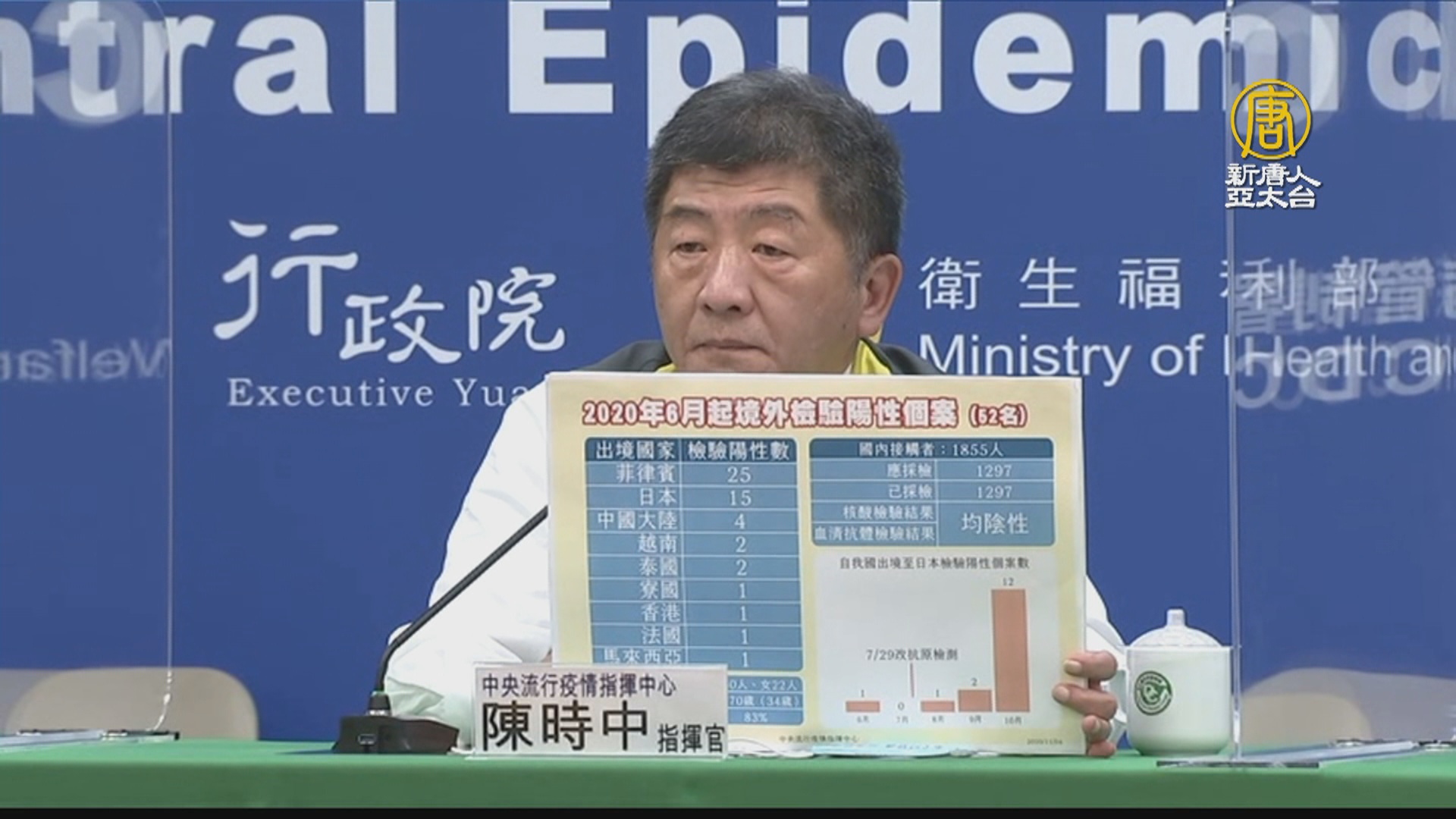 【新唐人亞太台 2020 年 11 月 04 日訊】好的,來看到,今天(4日)台灣防疫指揮中心,宣布新增一例來自歐洲的境外移入個案。歐洲疫情再爆發,指揮官陳時中表示,預期接著一段時間,歐洲入境台灣的確診者會增高,因此會加強對有症狀者的入境檢驗。