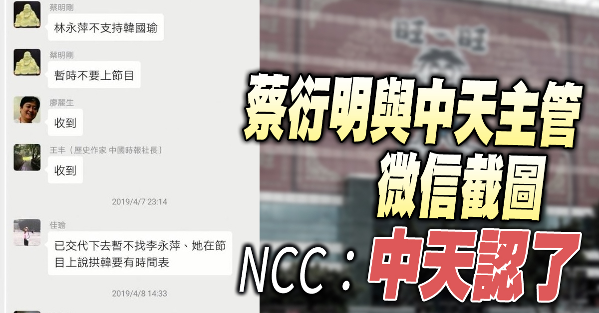 蔡衍明與中天主管微信截圖 NCC:中天認了