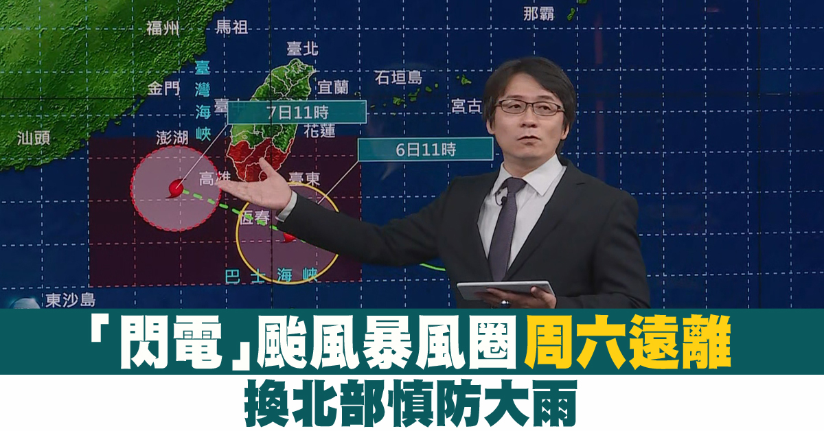 「閃電」颱風暴風圈周六遠離 換北部慎防大雨