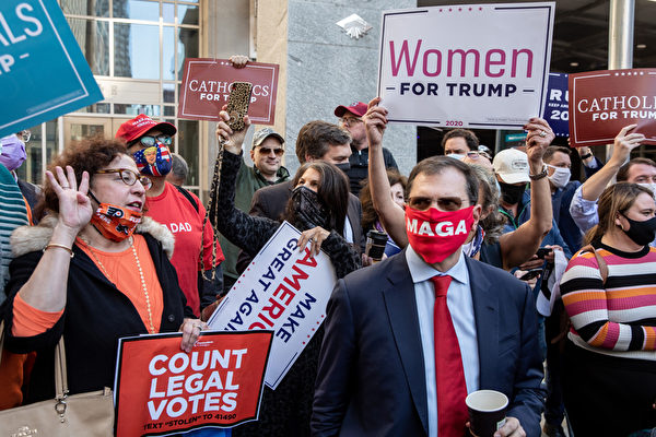 2020年11月5日,賓州費城,川普的支持者舉展板表達支持。(Chris McGrath/Getty Images)