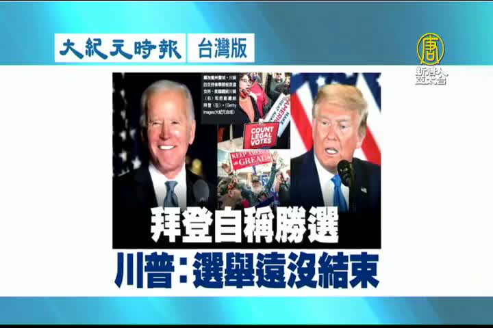 【新唐人亞太台 2020 年 11 月 09 日訊】繼續看到大紀元時報台灣版報導:拜登自稱勝選,川普表示,選舉遠遠沒有結束。