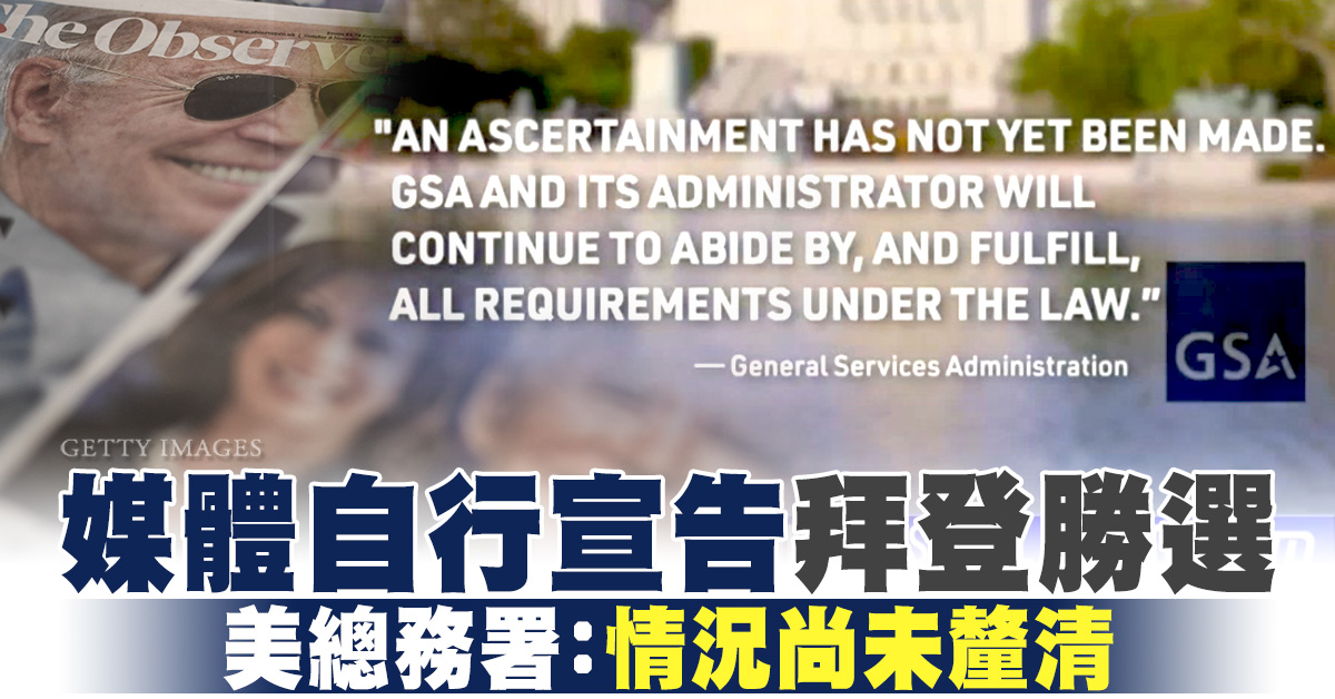 媒體自行宣告拜登勝選 美總務署:情況尚未釐清