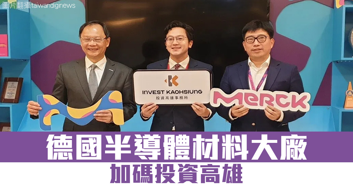 德國半導體材料大廠默克(MERCK)宣布將加碼投資高雄,分5年擴大位於路竹的高雄廠規模,預計將增加40~50%的產能及人力,默克是半導體材料供應商,之前曾投資1億台幣,在高雄創立默克在亞洲第1座積體電路(IC)材料應用研究與開發中心。這次在高雄的加碼,預計超越過去在全台投資總和。