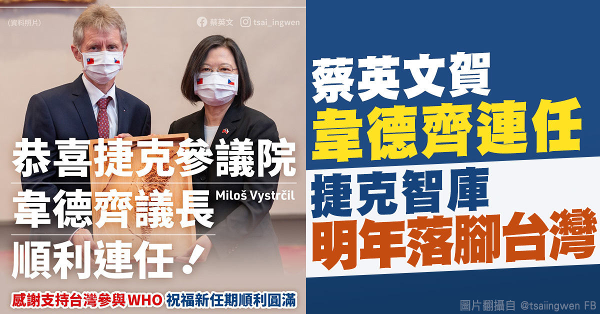 蔡英文賀韋德齊連任 捷克智庫明年落腳台灣