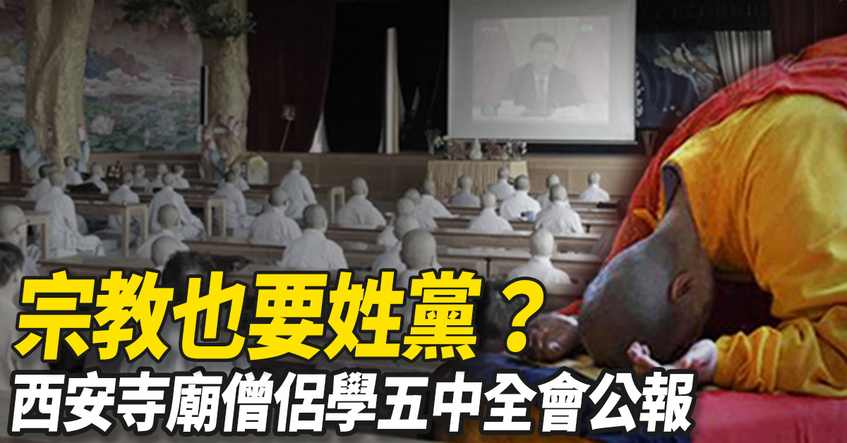 近日,外媒披露,西安一座寺廟上週組織全寺僧侶「集體學習五中全會內容及精神」,引發輿論譁然,不少中國網友翻牆質疑,為中國境內的宗教已變成中共的形狀。學者認為,中共政府將宗教與政治掛鉤,是對信仰自由基本人權的侵犯。