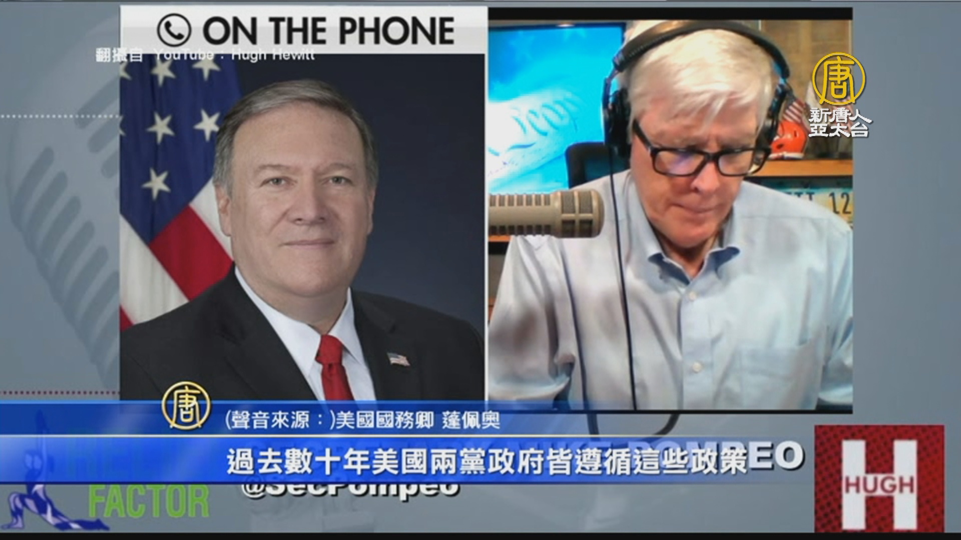 【新唐人亞太台 2020 年 11 月 13 日訊】美國國務卿蓬佩奧今天受訪時,被問到中共過去拋出犯台等狂妄言論;蓬佩奧說,台灣非中國一部分,過去數十年美國兩黨政府所遵循的政策也承認這件事。蓬佩奧說,美國對台承諾跨越黨派,兩黨都了解台灣是民主典範。