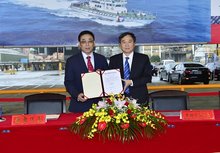 2019-05-21 20:14:24打造國輪國造!中鋼委由台船建造的20萬8千載重噸原料專輪,去年4月在台船高雄廠開工,今天由總統蔡英文命名「中鋼自由輪」後交船,蔡英文表示,未來自由輪航行在國際間,全世界都能看到台灣最自豪的價值,民主自由。