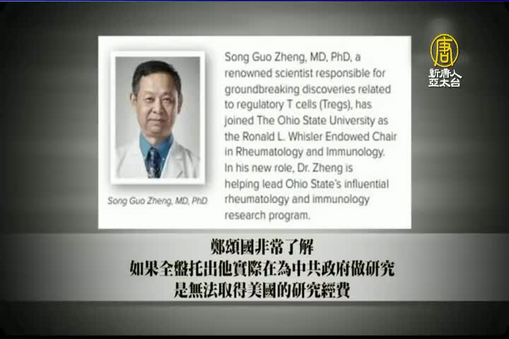 【新唐人亞太台 2020 年 11 月 14 日訊】美國司法部週四宣布,俄亥俄州立大學教授、華裔專家鄭頌國在聯邦法院認罪,他被控向聯邦政府做出虛假陳述,隱瞞參與中共千人計劃。
