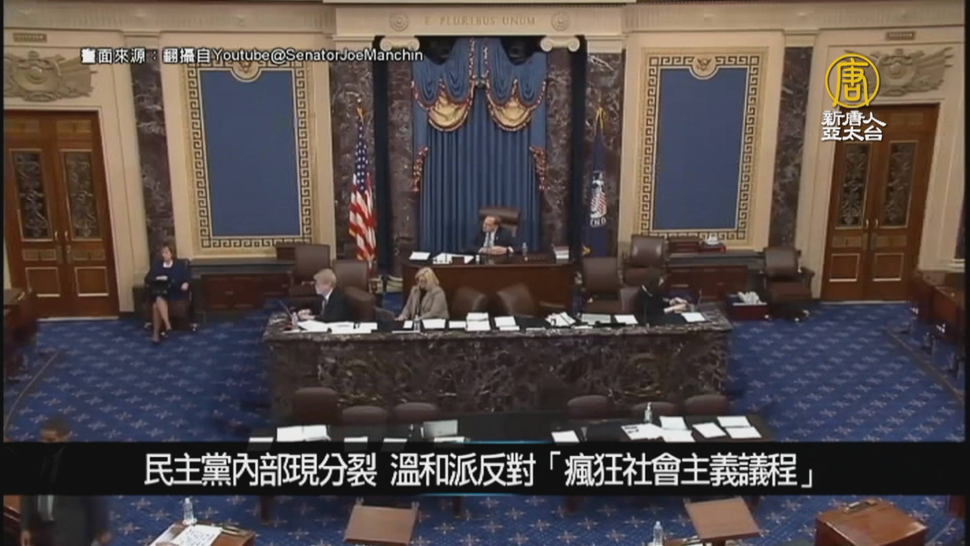 隨著美國民主黨越來越左傾,黨內溫和派感到不安。溫和派民主黨人、西弗吉尼亞聯邦參議員曼欽(Joe Manchin),發誓要阻止國會中任何「瘋狂的社會主義議程」。此後,民主黨極左翼?議員AOC(Alexandria Ocasio-Cortez)對曼欽發出了警告。民主黨內部分裂跡象顯現。