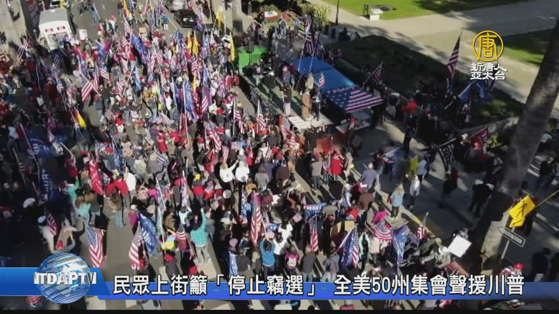 【新唐人亞太台 2020 年 11 月 16 日訊】隨著美國大選,舞弊案件不斷曝光,全美五十個州,紛紛舉行了「停止竊選」集會活動,週六(14日),不只在華盛頓,還有正在提法律訴訟的賓州、內華達州,甚至在深藍的加州,也有反對選舉舞弊、力挺川普的美國選民站出來。