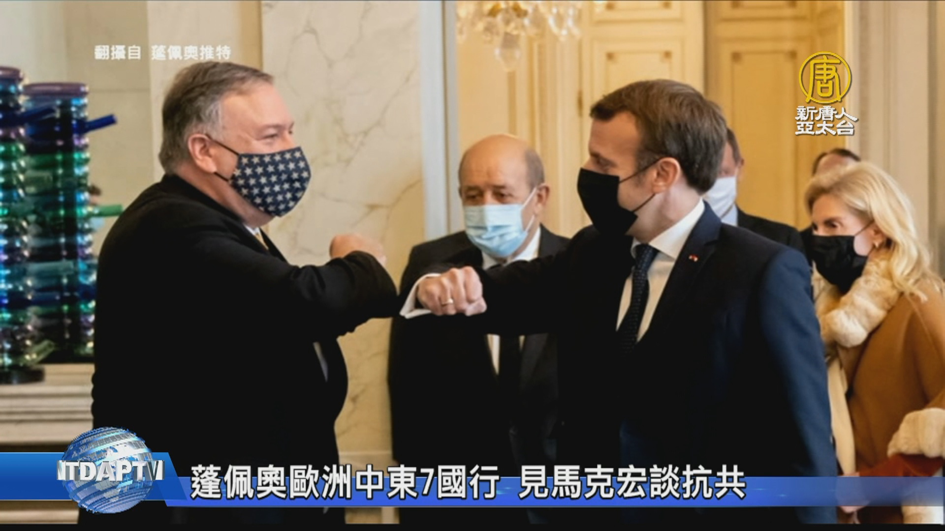 【新唐人亞太台 2020 年 11 月 17 日訊】歡迎回來,美國國務卿蓬佩奧,展開歐洲和中東七國訪問。周一,第一站他來到法國愛麗舍宮,先後會晤了總統馬克宏和外長勒德里安,美國國務院在會後聲明指出,蓬佩奧與馬克宏討論全球安全的重大威脅,也提到美歐在印太地區的強大合作,以及合力抗衡中共的努力。