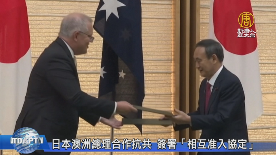 【新唐人亞太台 2020 年 11 月 18 日訊】中共軍事行動威脅區域安全,澳洲總理莫里森今天抵達日本,並在首相官邸與日本首相菅義偉進行會晤,雙方達成並簽署日澳「相互准入協定」,進一步落實日澳的「準同盟」關係。