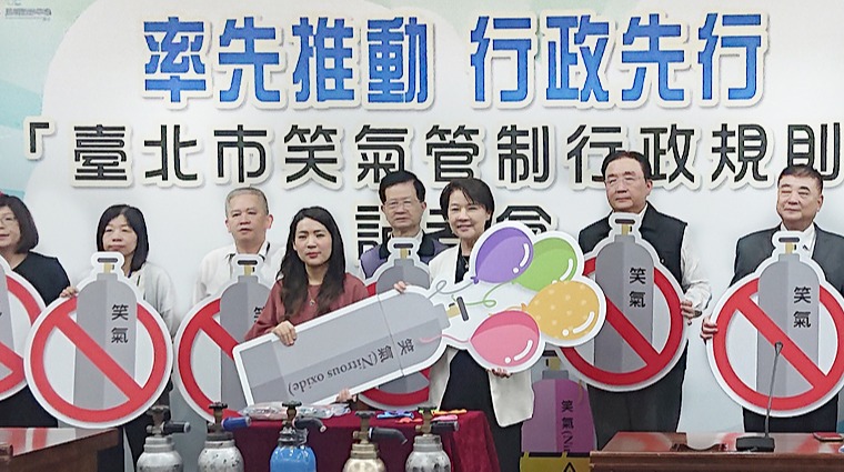 台北市制訂笑氣管制行政規則「臺北市政府防制營業場所一氧化二氮不當使用要點」,自今年11月13日起生效,以營業場所為稽查重點,包含視聽歌唱、舞廳、酒吧、酒家、夜店或住宿場所,期許場所加強管理,善盡業者責任。