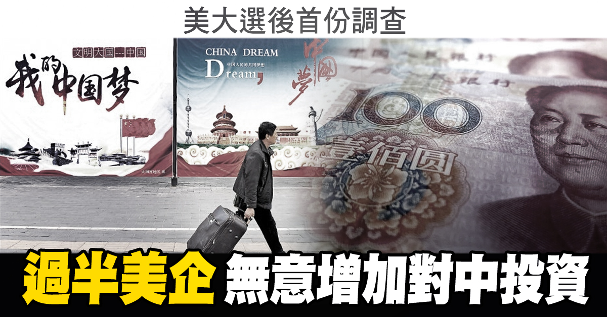 據《華爾街日報》報導,上海美國商會在美國大選後,對美國企業進行一項調查顯示,過半受訪美企表示沒有計畫在中國增加投資,有3分之1的美企擔心員工在中國的人身安全,另外還有3成美企認為,美中貿易緊張關係將持續下去。