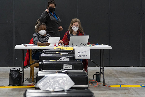 2020年11月16日,美國喬治亞州勞倫斯維爾(Lawrenceville),總統大選過後,格溫列特郡(Gwinnett County)選舉工作人員重新計票。(Megan Varner/Getty Images)