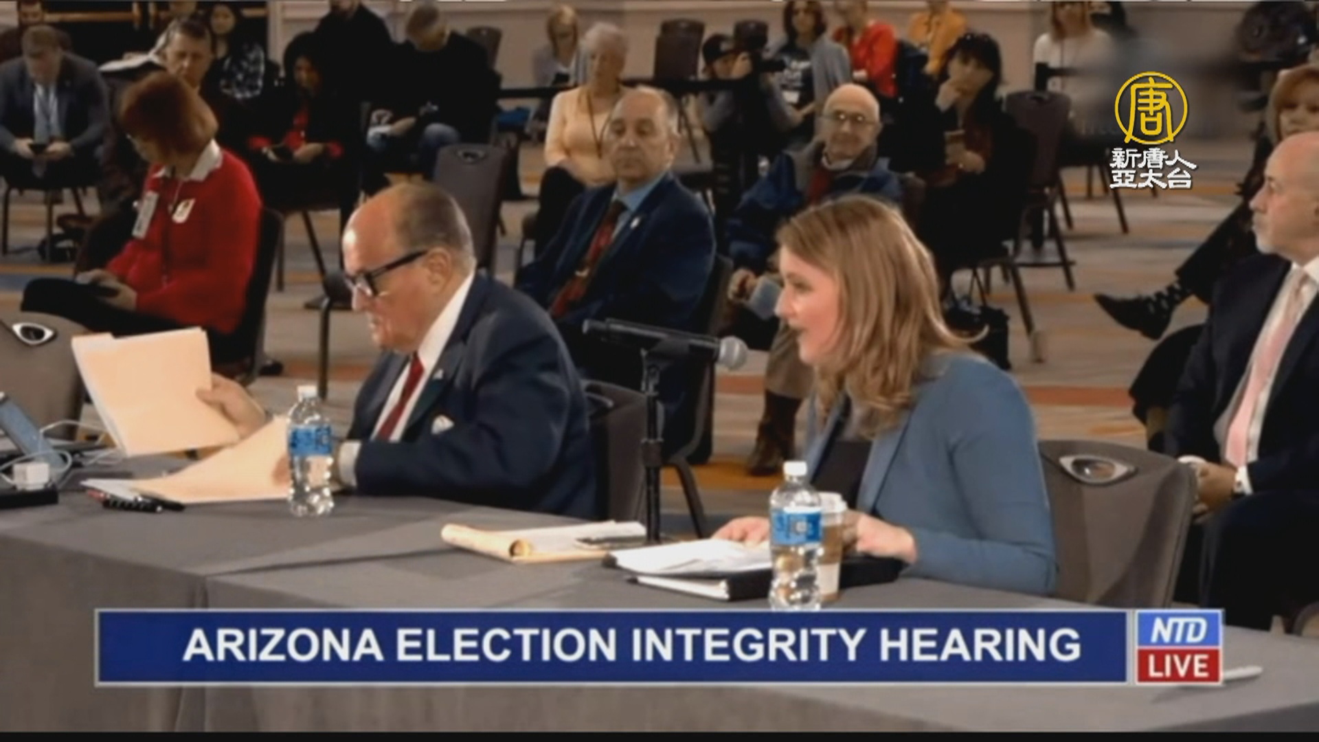 新唐人記者 王姿懿:「週一,川普律師負責團朱利安尼,和高級法律顧問艾莉絲,出席了亞利桑那州參議員舉行的選舉誠信聽證會,聽證會的目的是收集證據,以證明需要召開特別會議,來搞清究竟發生了什麼,並迅速採取上議行動,川普團隊律師珍娜·艾莉絲,日前表示,希望亞利桑那州與賓州一樣,重申州議會權力,任命選舉人團,要依據實際選舉結果,而不是依據現存的腐敗和欺詐來確認結果。」