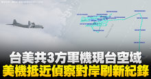 台美共3方軍機現台空域 美機抵近偵察對岸刷新紀錄