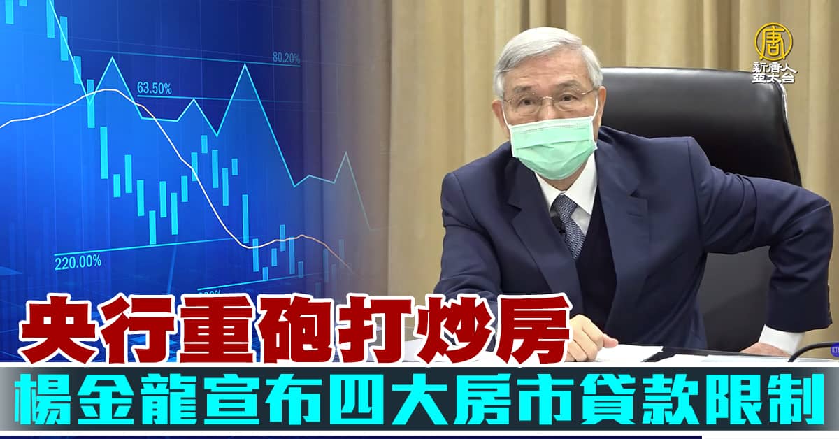 【新唐人亞太台 2020 年 12 月 07 日訊】再來關心,中央銀行總裁楊金龍,周一下午無預警宣布新政策,鎖定公司法人、自然人、購地貸款,還有餘屋貸款,限制銀行業貸款成數,這是睽違十年後,央行再度祭出全面性信用管制。