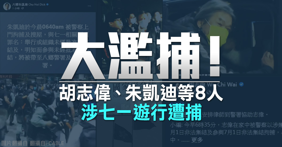 大濫捕!胡志偉、朱凱迪等8人涉七一遊行遭捕