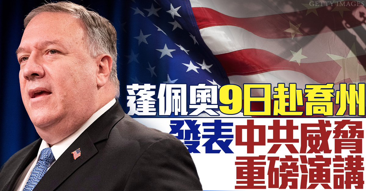 蓬佩奧9日赴喬州 發表中共威脅重磅演講