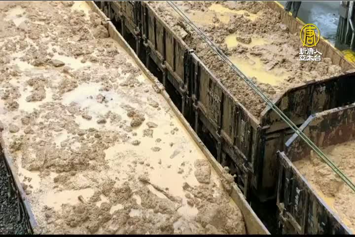 雖然仍朝向週日搶通目標,但連日大雨讓邊坡依舊鬆軟,軌道甚至一度淹水,台鐵再度出動無蓋敞車,加快清運大量含水土方。