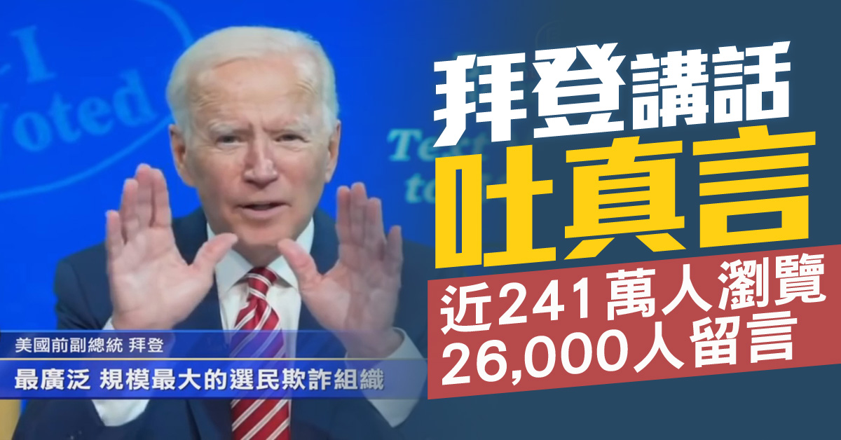 拜登講話吐真言 近241萬人瀏覽2萬6千人留言