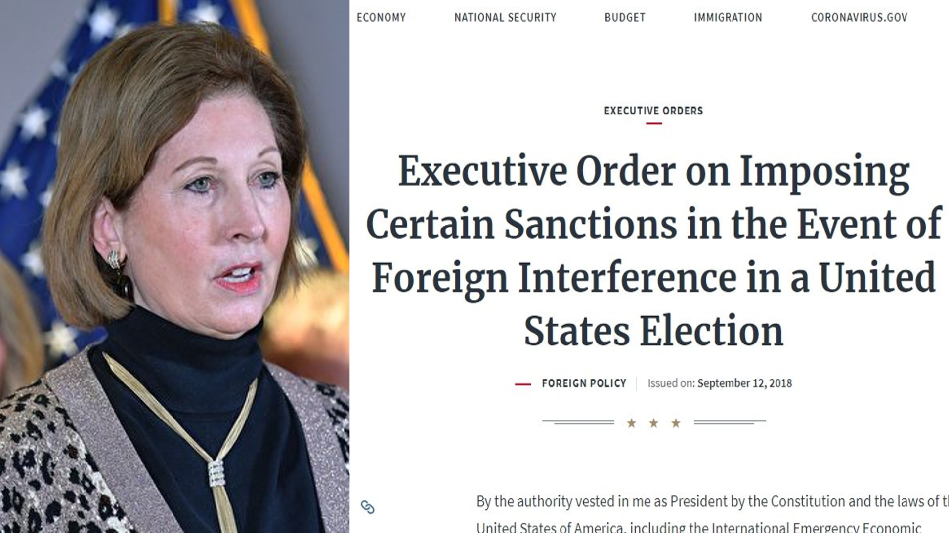 【新唐人亞太台 2020 年 12 月 14 日訊】美國知名律師鮑爾(Sidney Powell)表示,11月3日大選,因為涉及外國干涉問題,這足以觸發執行川普總統在2018年發布的、對干涉美國選舉實施制裁的行政令。行政命令可以給川普「各種權力」,「從查封資產到要求扣押投票機。」2018年9月,美國總統川普簽署了一項行政命令,要求「在美國大選結束後的45天內,國家情報局局長應與任何其他適當的行政部門和機關的負責人協商,對任何表明外國政府,或作為外國政府代理人,或代表外國政府行事的人,就有干預美國大選意圖,或目的的信息進行評估。」