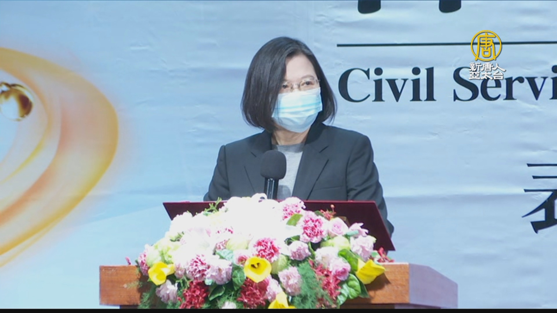 【新唐人亞太台 2020 年 12 月 15 日訊】來關心政治話題,關於內閣是否會改組,傳言不斷,總統蔡英文今天出席活動時,被問到相關議題,她也特地比出加油手勢,來支持蘇院長。