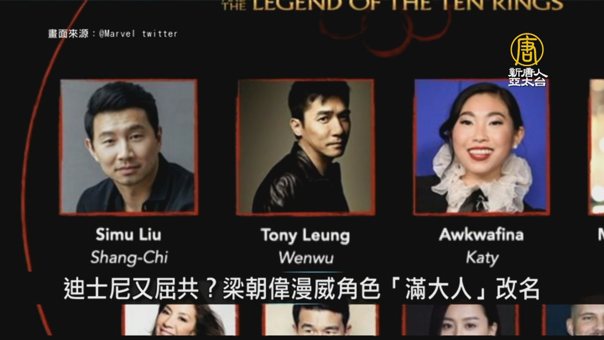 由多位華裔影星主演的漫威電影《上氣》,日前公布演出陣容,並鎖定2021年7月9日上映。有眼尖的網民發現並猜測,梁朝偉所飾演的「滿大人」已悄悄改名為「Wenwu(暫譯「文武」)」,迪士尼挨轟是為避免辱華爭議進行自我審查。