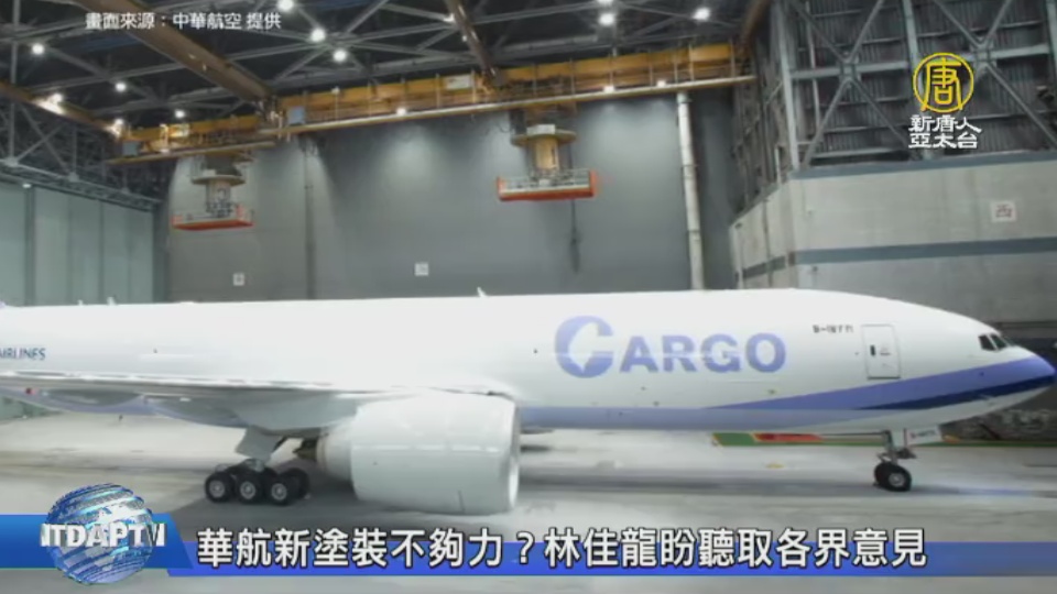 【新唐人亞太台 2020 年 12 月 16 日訊】昨天,中華航空公司首架波音777貨機的最新塗裝曝光,把CHINA AIR LINES字樣縮小,貨機身上Cargo字樣也藏有台灣形狀的圖像。不過,週三(16日)民進黨立委和議員召開記者會,認為目前的設計沒有凸顯台灣,很難讓人辨別飛機來自台灣。交通部長林佳龍表示,尊重華航,但也希望華航聽取各界意見。