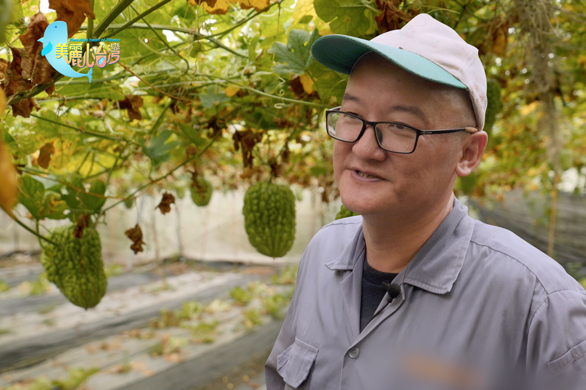 新品種翠玉蘋果苦瓜,從嫁接完成後,只需要40天就可以採收,而且好管理又不用包,也不需要修枝,放著讓它自然成長,只要注意上面的果實翻找下來就可以。而從事農業將近八年的林益松,一開始只是為了回來照顧年邁的父母親才接手農場,對於農業並沒有多大的熱忱。