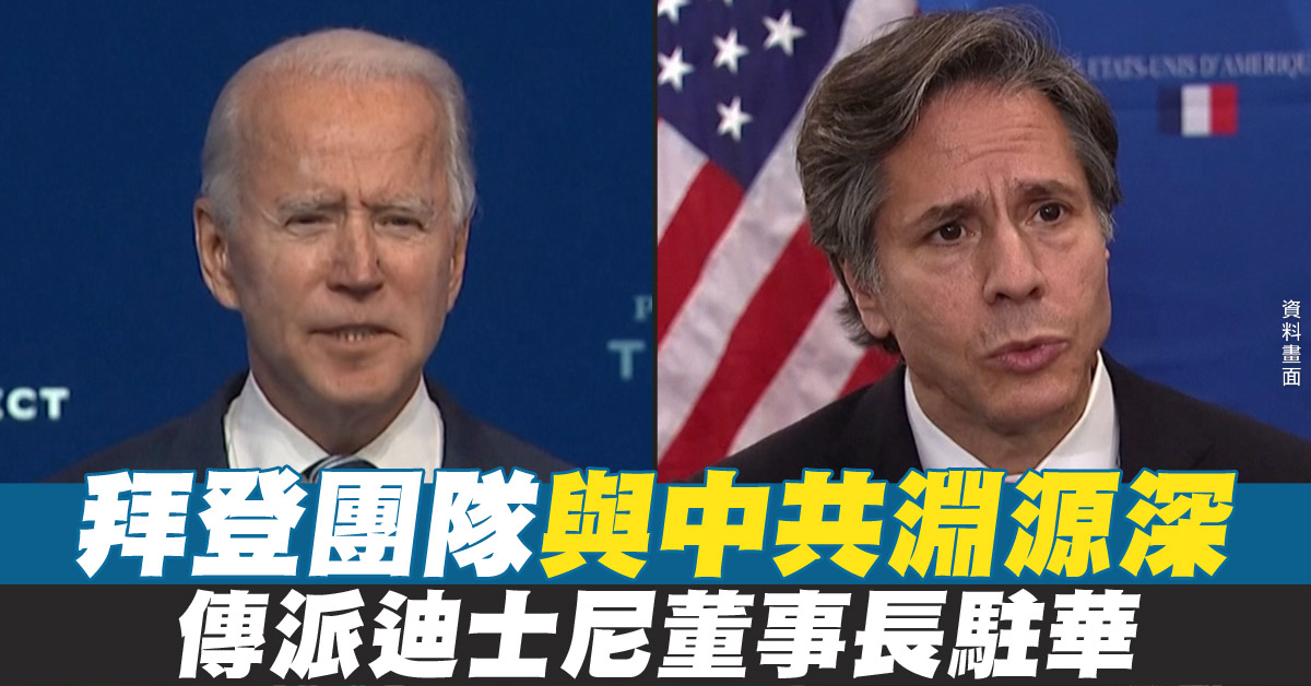【新唐人亞太台 2020 年 12 月 18 日訊】拜登團隊上月底宣布,第一批「內閣」成員,提名布林肯(Antony Blinken)出任國務卿。外界關注布林肯對中態度,發現他在2017年成立「西政諮詢」(WestExec Advisors)戰略顧問公司,協助客戶打進中國市場。外媒日前爆出拜登可能提名迪士尼公司董事長艾格(Bob Iger)為駐中大使,迪士尼之前為了中國市場,向中共低頭,也引發外界抨擊。