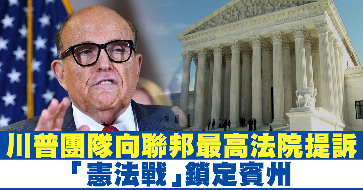 20號,美國總統川普(Donald Trump)法律團隊負責人朱利安尼(Rudy Giuliani)發表聲明,題為「川普競選(團隊)在最高法院展開憲法戰」。川普競選委員會週日向美國最高法院提交複審令申訴(petition for writ of certiorari),要求推翻賓州最高法院裁決的三個案子。聲明寫道,這些案子在2020年總統選舉前後非法改變賓州的郵寄投票法,違反美國憲法第二條和「布希訴高爾案」(Bush v. Gore)。