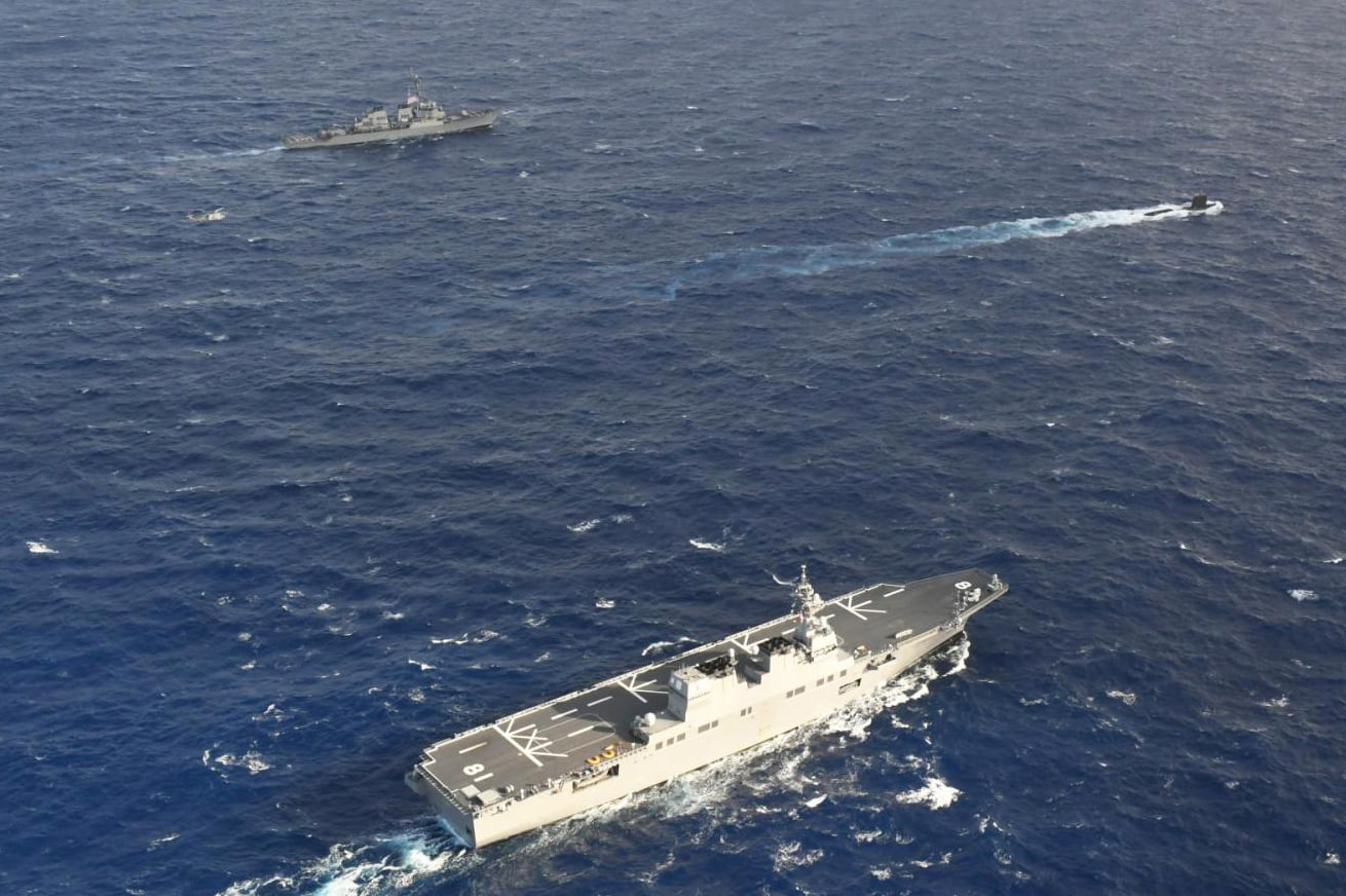 法國核子潛艦與美日三方,15日到17日期間在西太平洋聯合訓練。(圖/日本海上自衛隊臉書)
