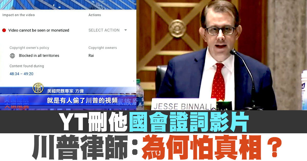 YT刪他國會證詞影片 川普律師:為何怕真相?